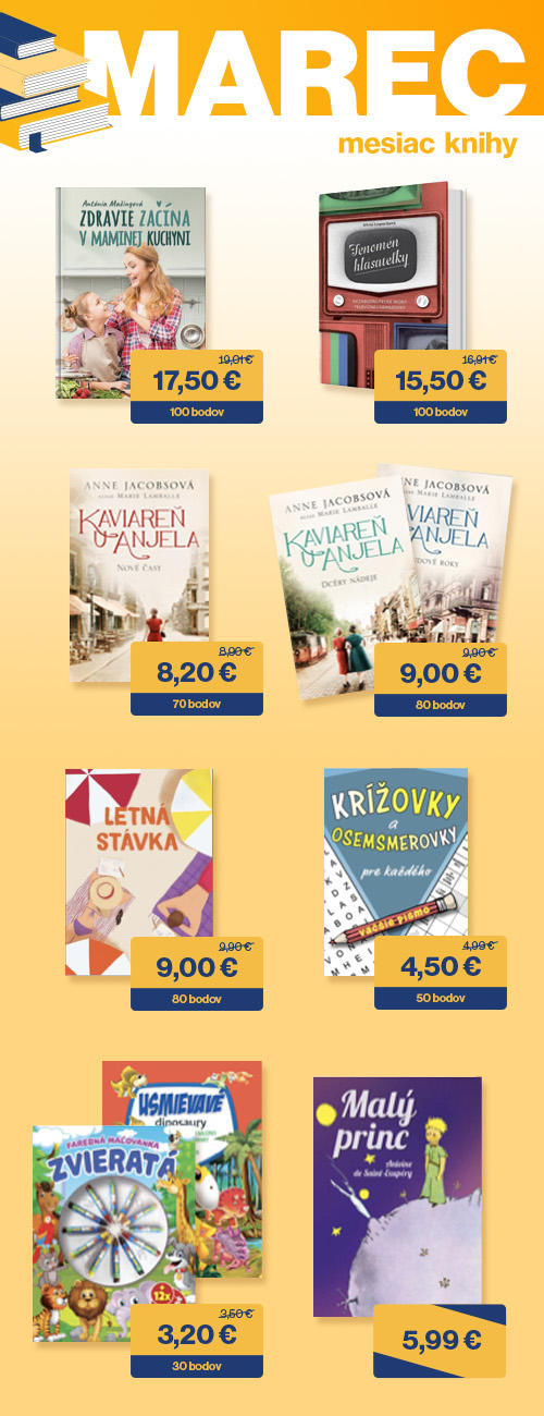 Marec patrí každoročne literárnym nadšencom a my sme pre Vás pripravili tipy na knihy z nášho e-shopu. Využite Vaše body na ešte výhodnejší nákup encyklopédií, krížoviek, detských knižiek aj beletrie.